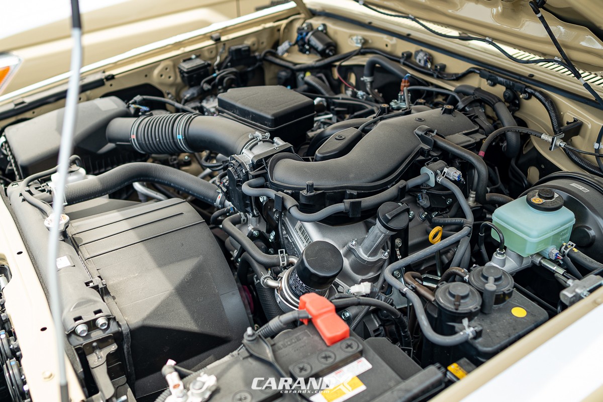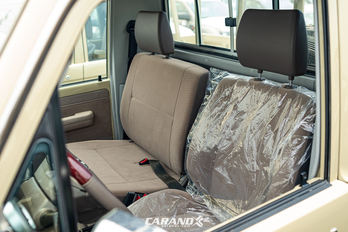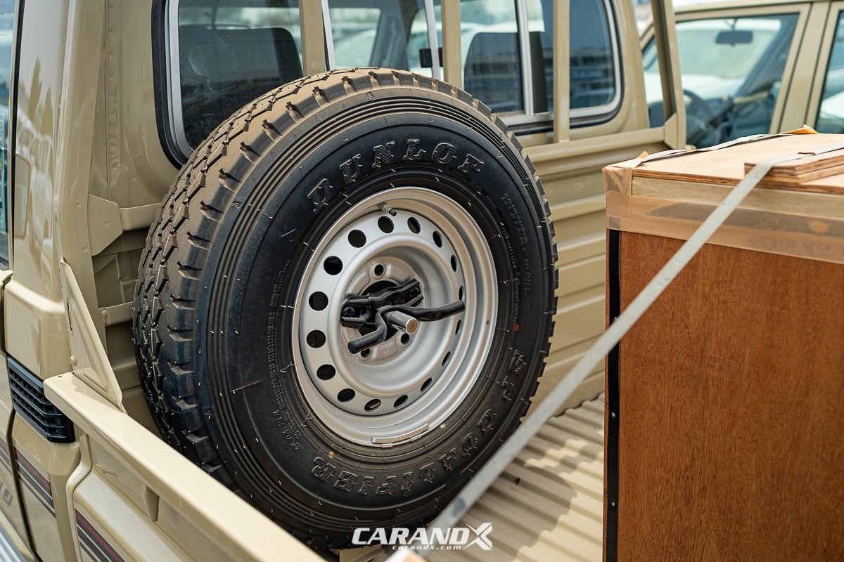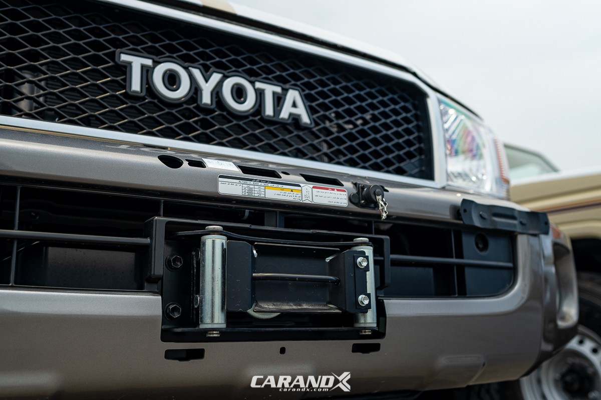 This brand new GJR79 comes with a 4-liter V6 petrol engine and a standard pickup body. The traditional ladder frame chassis makes the vehicle very robust and provides ample opportunities for modification and rebuilding. This particular GRJ79 comes with a factory mounted 3-ton winch.