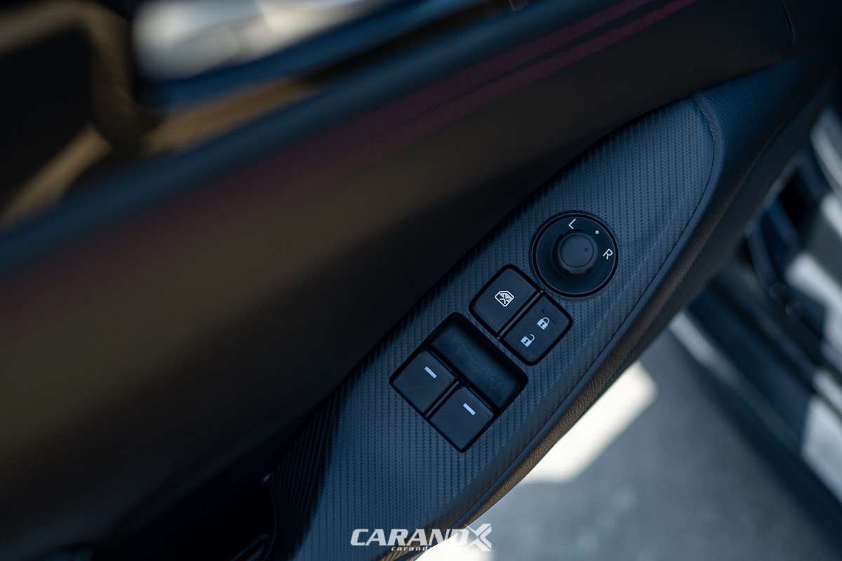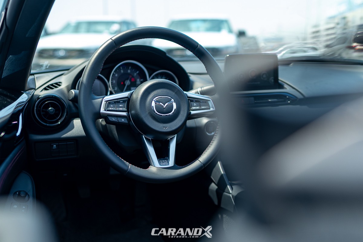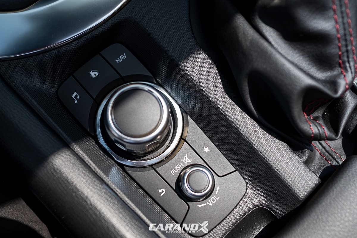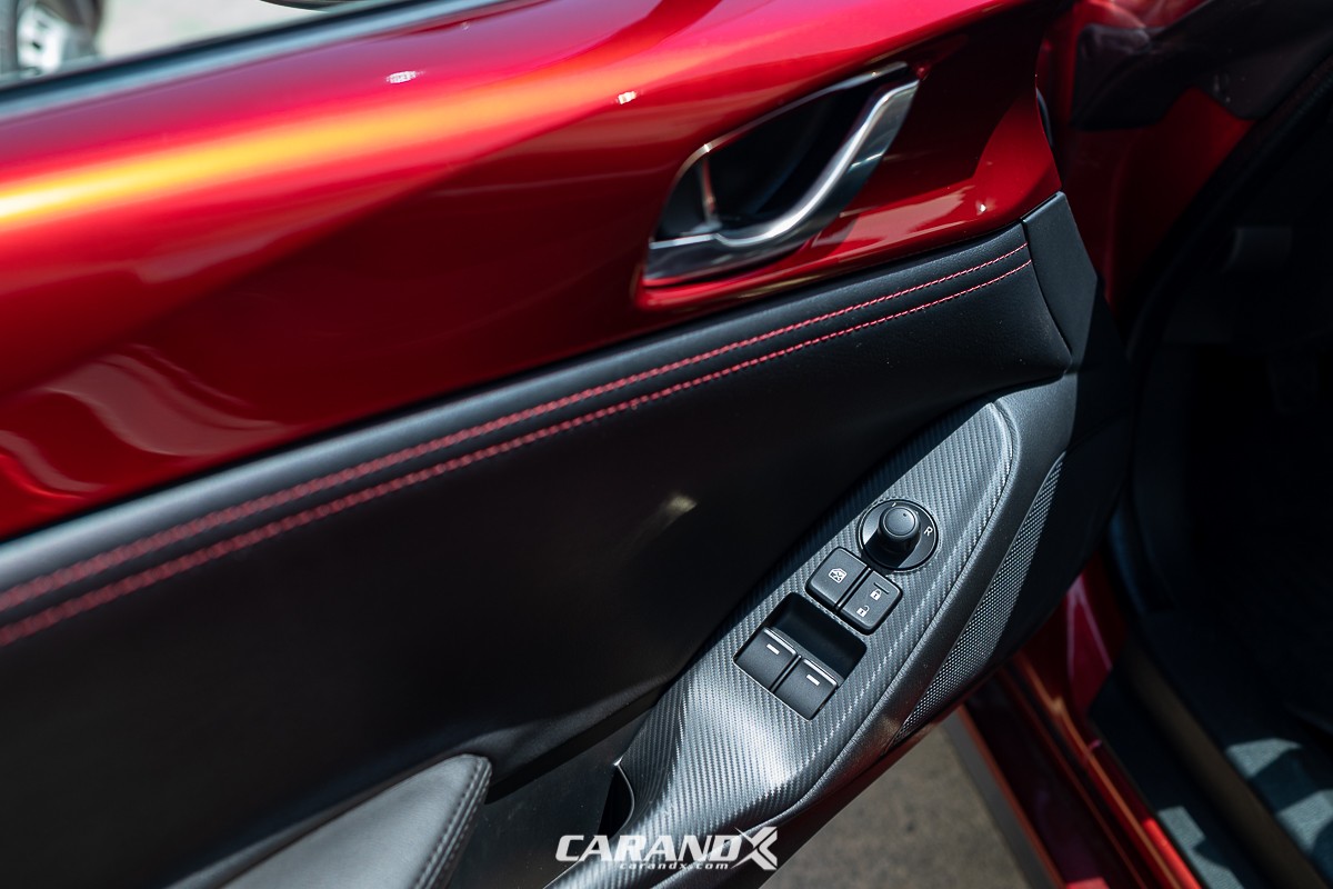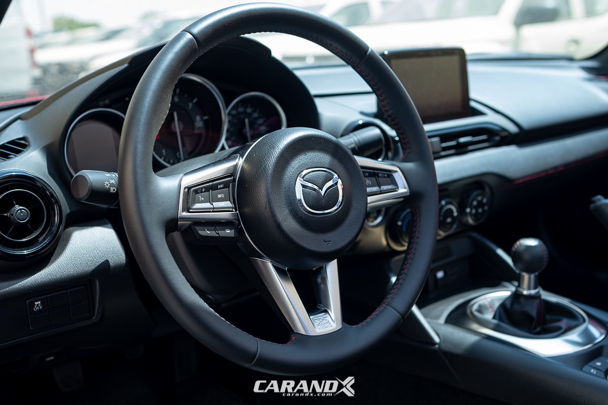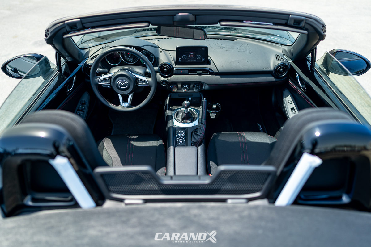 | Seat Material | : | Black cloth upholstery with red stitching |